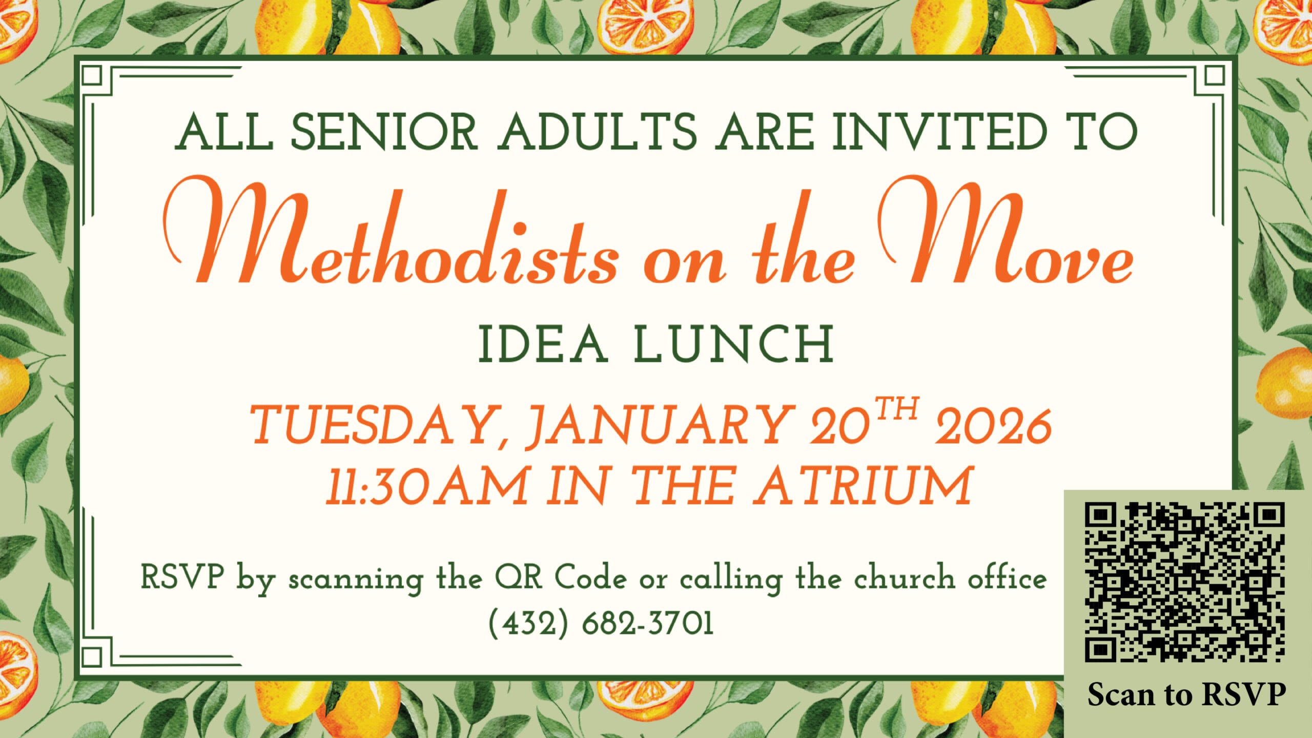 RSVP by scanning the QR code or by calling the church office (432) 682-3701