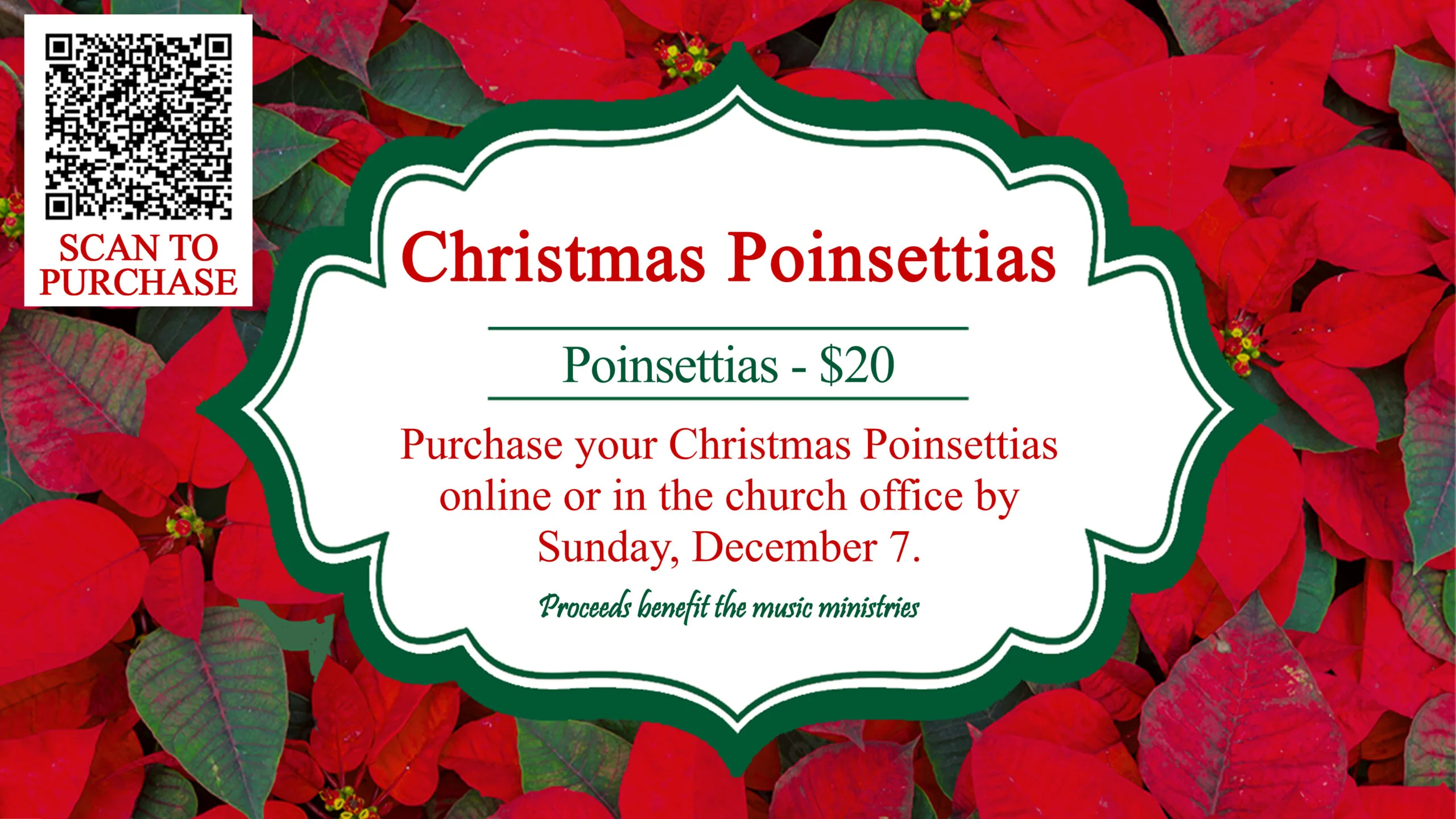 Purchase your Christmas Poinsettias for $20 online or in the church office by Sunday, December 7th.
