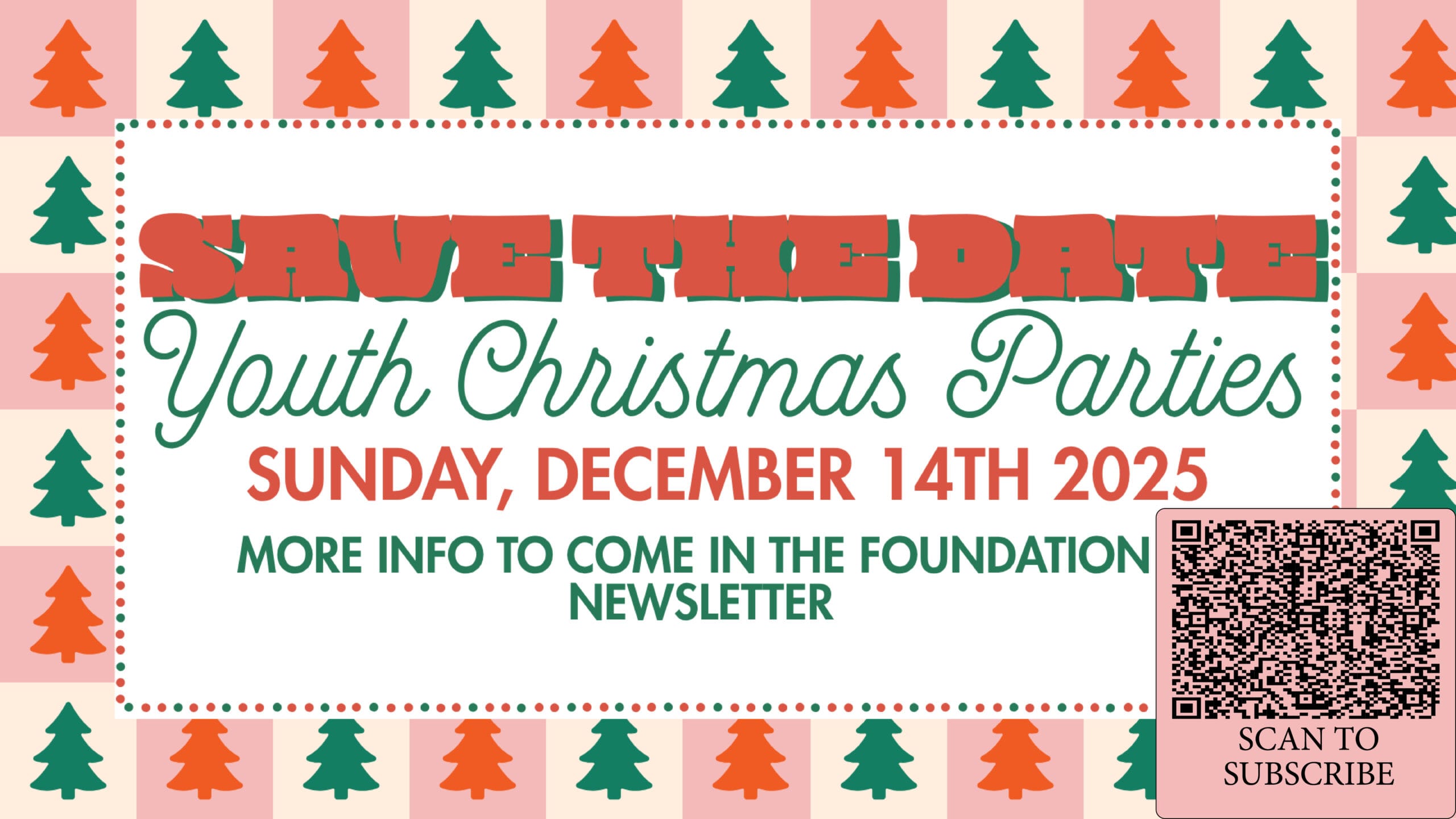 Save the date for the Jr high and Sr high Christmas parties Sunday, December 14th